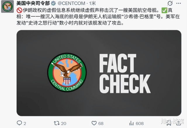 好意思国中央司令部晓示已糟蹋“沙希德·巴盖里”号