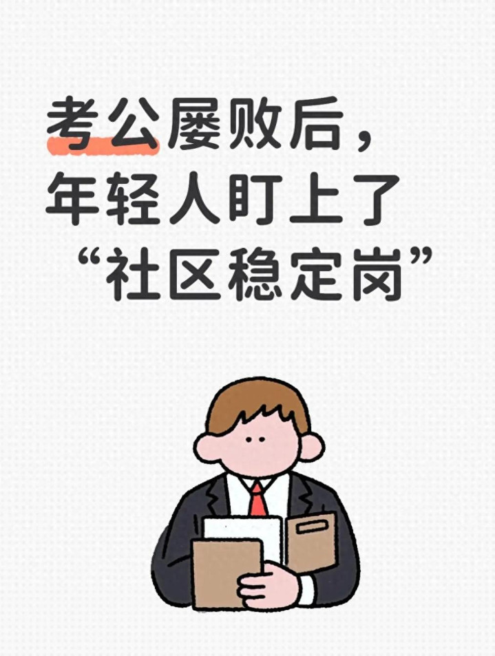 近几年作事市集上,一股新的求职趋势正在快速彭胀。多数在公事员训练中屡屡失利的年青东说念主,不再执着于千军万马过独木桥,而是将见识投向了也曾被视作“中老年专属”的社区使命岗亭。也曾无东说念主问津的下层服务岗,如今摇身一酿成为求职热点,报录比不断攀升,高学历东说念主才扎堆报考,以至出现了年青东说念主与传统社区使命者同台竞争的征象。