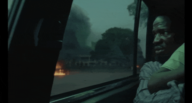 配乐仿佛在模拟悲痛自身的质感——迂缓、幻灭,却又铭肌镂骨。而那些无处不在的环境音:士兵的靴声、收音机的噪音、街头争吵的约鲁巴语、电视里晓喻选举无效的冰冷女声……它们共同组成了一个声景的樊笼,将弗拉林一家困在历史的伤口之中。