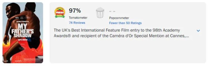 这便是英国导演阿金诺拉·戴维斯执导,并与其昆季瓦莱·戴维斯共同编剧的半自传体电影《父影之下》,目下烂番茄崭新度97%。