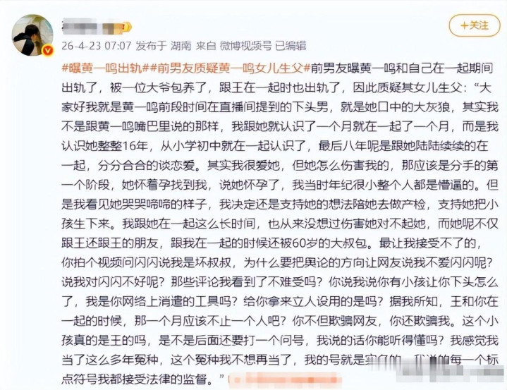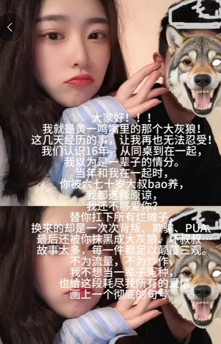 说我方和黄一鸣意志16年、恋爱8年,早就看穿了她的私糊口。他说的每一件事,皆无比的劲爆。